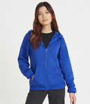 Introducing the AWDis Ladies College Zoodie. An ultimate pick for women who would love to stay comfy and stylish in their daily casuals simultaneously. This hoodie is prepared from a soft cotton faced fabric and brushed back fleece that ensures coziness for the wearer with ease. Great for keeping warm and feeling relaxed at the same time. The relaxed fit and dropped shoulder style combine with the double fabric hood, complete with a self-color drawcord, to marry function with fashion.
