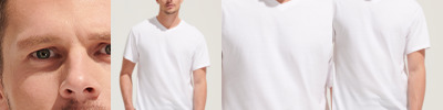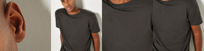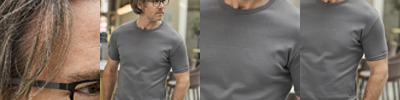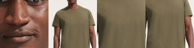 100% ringspun combed cotton. In transition to using organic cotton. Enzyme and silicone washed. Fitted style. Narrow ribbed collar with elastane. Side seams. Twin needle sleeves and hem. 60°C wash.