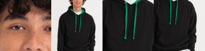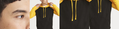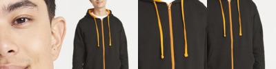 - Contrast double fabric hood with flat lace drawcord for style and fit