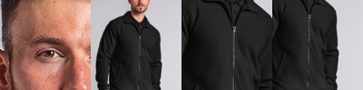 Unlined. Modern unisex fit. Full length zip. Self fabric side panels. Two front zip pockets. Bound cuffs and hem.