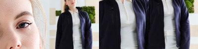 Easy care and quick drying. Unlined. Taped neck. Full length zip. Right chest zip pocket. Two front zip pockets.
